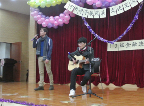 Cry Cry爵士舞作为开场,把晚会带入了热烈的气氛中,越南留学生的吉他弹唱、金融班的印度舞、泰国留学生的即兴舞蹈将晚会渐渐推入高潮,期间,丽江少数名族文化传习会的纳西族舞蹈和13汉教班同学的献唱作为客串节目出场,为晚会增添了不少亮点。活动过程中穿插的有奖竞答环节让同学们对中外文化有了更深了解。在柔美悦耳、极具民族风采的一曲巴乌演奏之后,中外学生《朋友》合唱让本次晚会进入尾声。